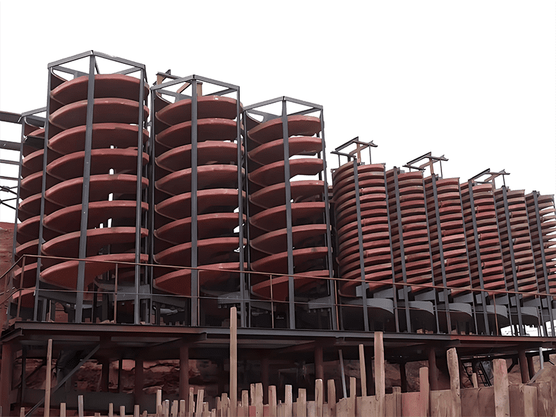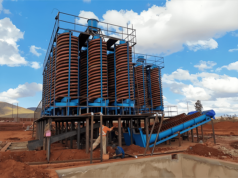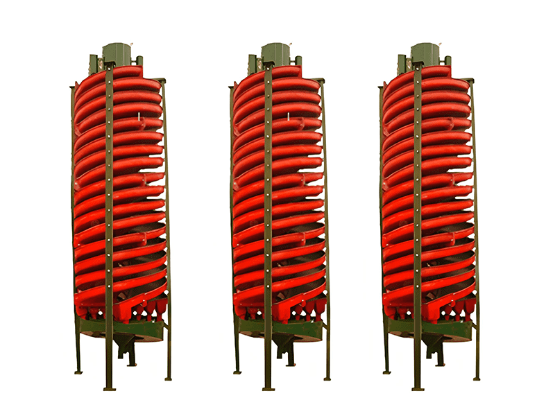 螺旋溜槽是一種重選設(shè)備,利用礦漿在螺旋回轉(zhuǎn)中產(chǎn)生的離心力實(shí)現(xiàn)輕重礦物的分選。礦漿通過(guò)給礦槽均勻給入,在螺旋槽面上進(jìn)行分選,尾端閥塊式截取槽將產(chǎn)品按品位分成三種。通過(guò)調(diào)節(jié)閥塊位置改變截取寬度,產(chǎn)品集聚斗導(dǎo)出。螺旋溜槽結(jié)構(gòu)簡(jiǎn)單,無(wú)需動(dòng)力,適用于細(xì)微粒物料選別,具有高回收率和分選準(zhǔn)確的優(yōu)勢(shì)。